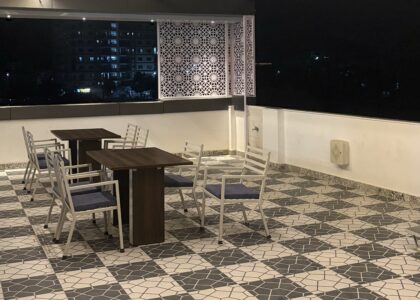 Enjoy stunning views and fresh air in our rooftop area—perfect for relaxing, dining, or hosting small gatherings under the  sky.